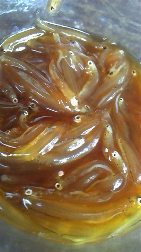 沖でとれた生きたシラスを醤油、味醂、お酒を煮詰めたタレの中に