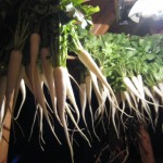 ツレヅレヤス 今日は、、 by syokuyabo|Published 2010年12月2日 今日はネギの定植。 もう少しで終わりだ! 色々なやり方を試しているんだけど、 先日、秋谷の先輩農家の方に教わったやり方が一番しっくりくる。 この方、最近の俺の師匠。困った事があったらいつも質問に行くのです。 まずは苗床から抜いた苗の分別作業。 左はOK。右のは小さすぎるので料理に使います。 で、定植 無事、大きくなってくれ~!! 夕方には間引き大根の葉を縛り、つるしてみました。 これらは漬物にする予定!