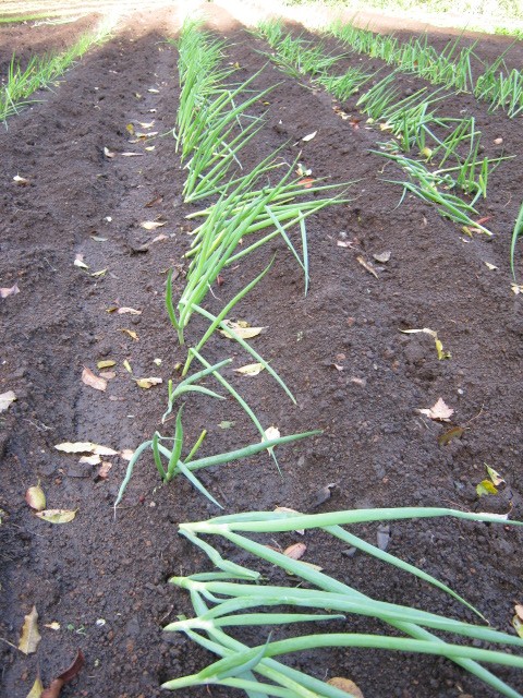 畑を見に行くと、やはり、定植したばかりのネギが倒れている。